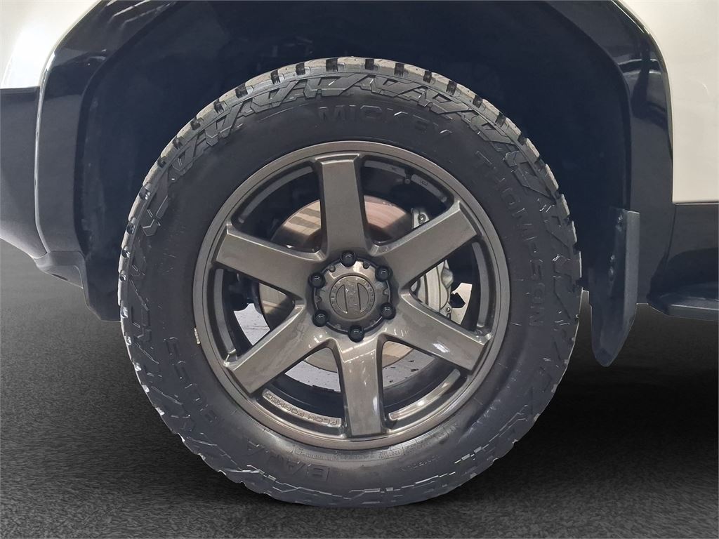 - Wide stanced aftermarket wheels and tyres giving it an aggressive, commanding